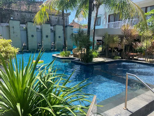 At the heart of the property is an outdoor pool with shallow and deep sections, a small kids’ pool and a quiet swim‑up bar. Some ground‑floor rooms open directly onto the pool, which a few find handy and others find lacking privacy. A compact spa on the 2nd floor and on‑site Bali massages receive enthusiastic praise from multiple guests for both price and quality. Long‑stay visitors mention a relaxed garden setting, fish pond at the entrance and monthly free meals, such as Babi guling nights, that bring regulars together.